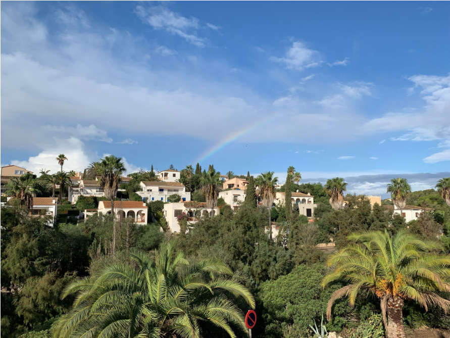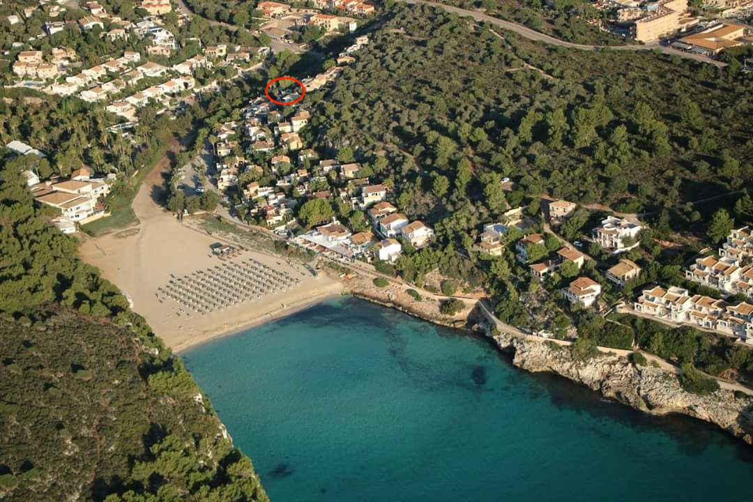 Das Haus liegt direkt am Passeig S'Estany d'en Mas, der Strandzufahrt von Cala Romantica. Über 16 Stufen kommen Sie auf die Hauptterrasse, die etwa nach Westen ausgerichtet ist. Hier lässt sich wunderbar der Blick ins Grüne genießen (das Nachbarhaus heißt Miraverde: Blick ins Grüne) - entweder beim gemeinsamen Essen oder einfach einem Glas hervorragendem Wein von der Insel. In zwei ebenerdigen Gehminuten sind sie am herrlichen Strand.